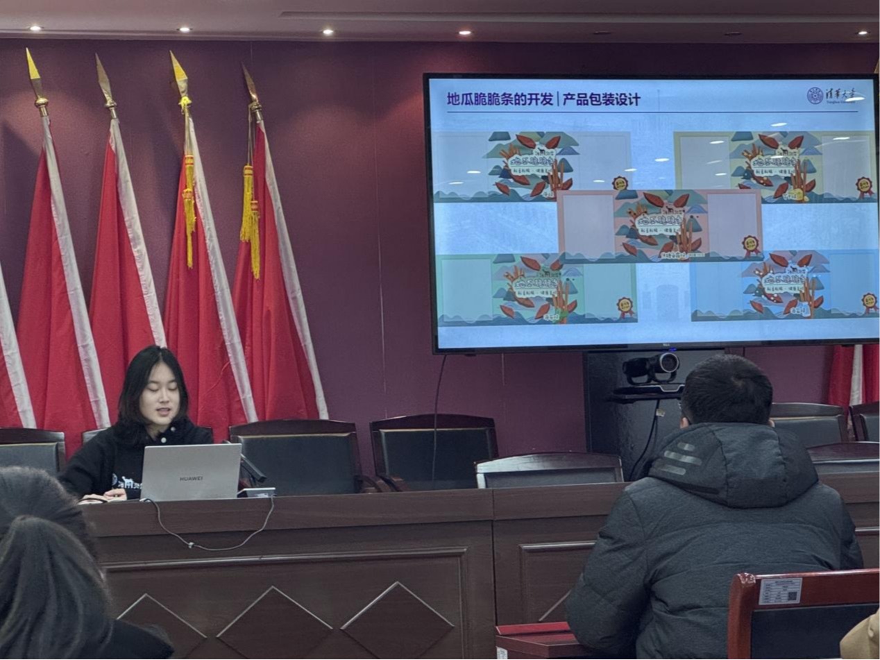 针对嵛山岛地瓜深加工需求,团队优化此前暑期实践的“地瓜脆脆条”工艺,新增了鱼露酱风味,最终确定原味、海苔、芝士、海盐、鱼露五种风味配方及包装设计。通过控制水分活度与非油炸工艺,产品在保留地瓜天然甜味的同时实现酥脆口感,并完成样品量产与标准化生产指南,未来落地为当地地瓜产业增产增收。