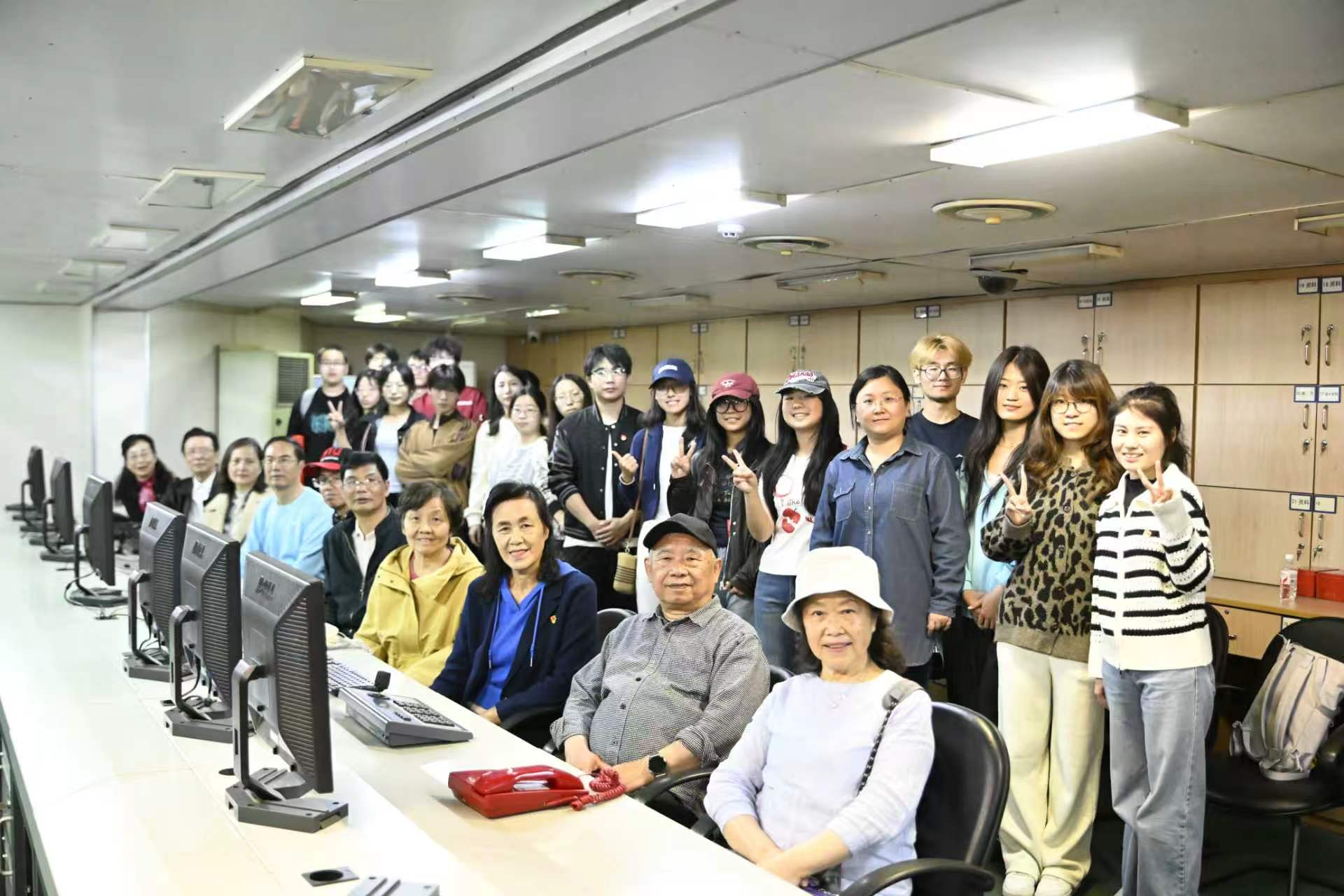 下午师生一行来到江阴远望二号基地。作为我国航天远洋测控事业的功勋船舶,远望二号承载着几代科技工作者的奋斗与荣光。在讲解员的带领下,大家登上测量船,近距离参观驾驶舱、测控设备舱等核心区域,详细了解远望号的发展历程与辉煌成就。老党员与青年团员不时交流互动,老同志们结合自身工作经历,讲述当年艰苦创业、勇攀高峰的故事;青年团员们则围绕科技创新、报国志向踊跃提问,现场气氛热烈而温馨。