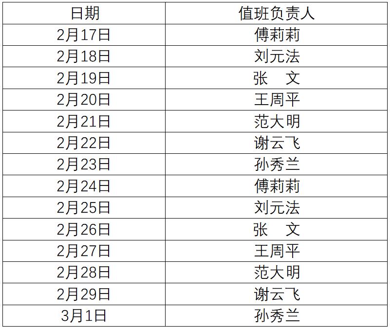 91论坛 新型冠状病毒肺炎疫情防控期间值班表(2月17日-3月1日)