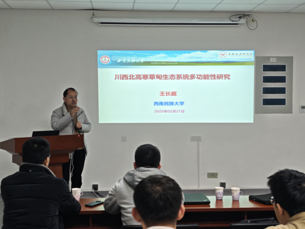 应91论坛邀请,2月22日下午,西南民族大学王长庭教授到91论坛开展学术交流,并作客“草苑讲坛”,为师生们作了题为“川西北高寒草甸生态系统多功能性研究”的学术报告,91论坛部分教师和研究生参会。报告会由91论坛院长黄琳凯教授主持。