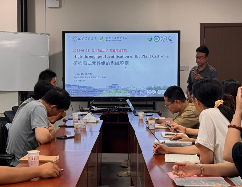 报告会上,朱方捷教授深入介绍了牧草顺式作用元件在基因表达调控中的关键作用,结合最新研究进展,系统阐述了顺式作用元件的鉴定策略以及在耐逆性与优质性状改良中的潜在应用价值。同时,他还分享了团队在高通量测序与生物信息学分析方面的经验,为牧草分子设计育种提供了新的思路。互动环节中,师生们就顺式作用元件的实验设计、数据解析和应用前景积极提问,现场学术氛围浓厚。此次报告不仅加深了师生们对牧草顺式作用元件研究前沿的理解,也为进一步拓展学术交流与合作搭建了良好平台。