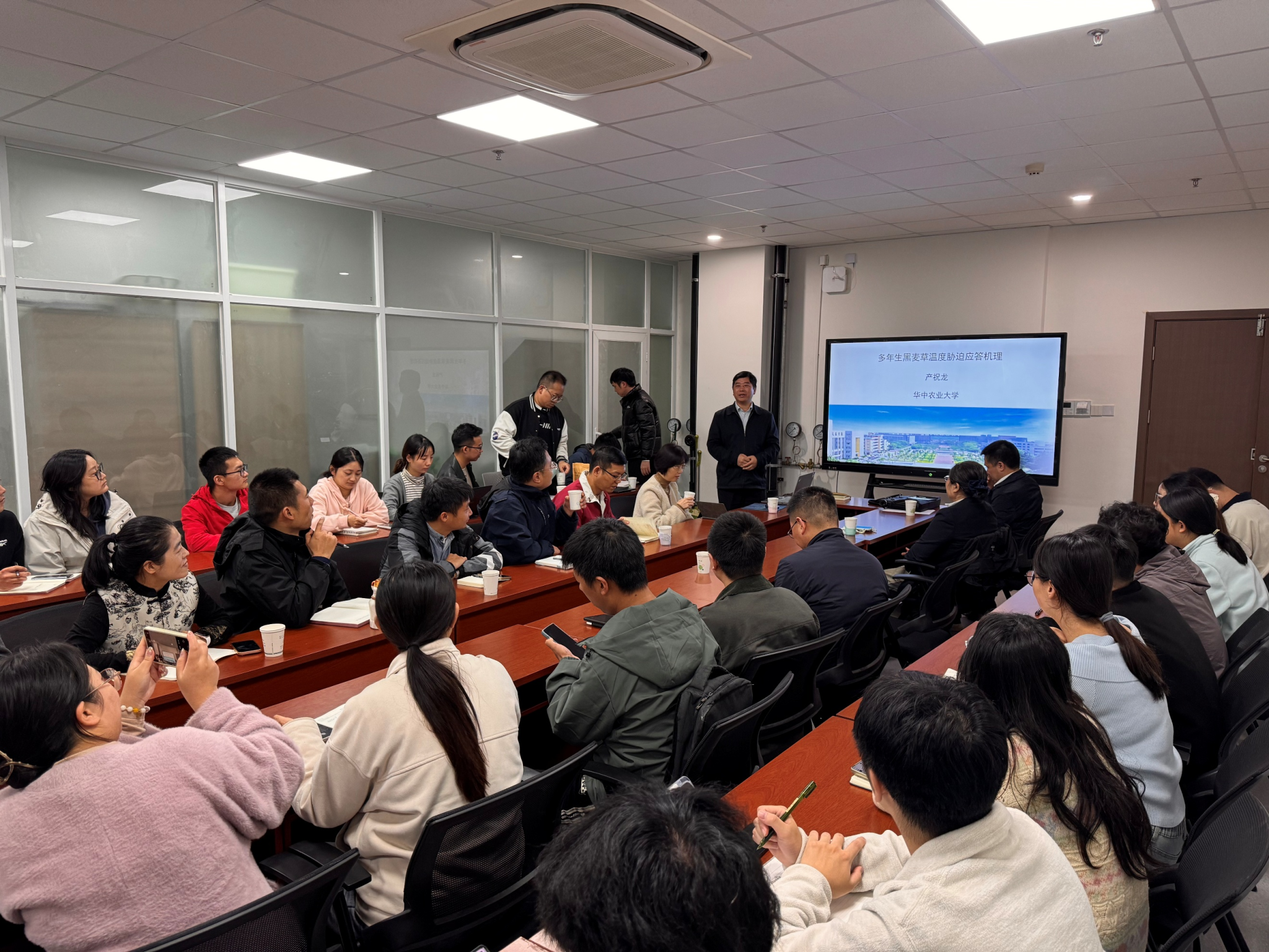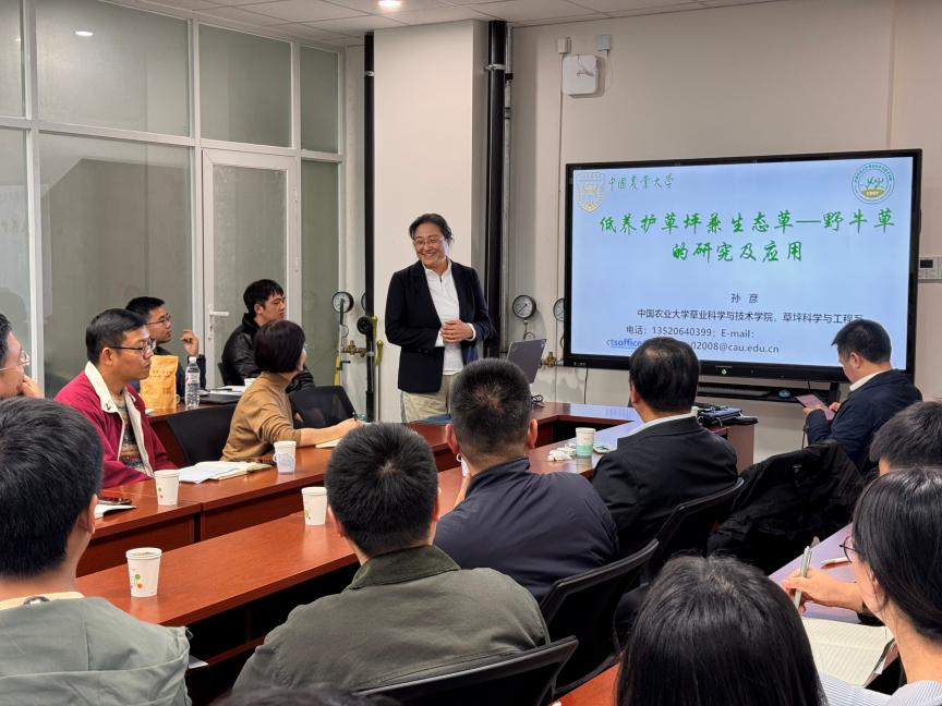 的前沿成果。产祝龙教授以《多年生黑麦草应答温度胁迫机理》为题,从分子层面深入剖析了禾草应对逆境的复杂生物学机制,为草类植物抗性育种提供了重要的理论依据。孙彦教授的报告《低养护草坪兼生态草—野牛草的研究及应用》,则聚焦于可持续发展的生态理念,系统介绍了野牛草在低养护草坪建设中的巨大潜力和应用前景,为美丽中国建设提供了绿色方案。胡涛教授以《牧草基因编辑种质创新研究》为主题,展示了前沿的基因编辑技术在牧草种质创新和产量提升中的革命性应用。