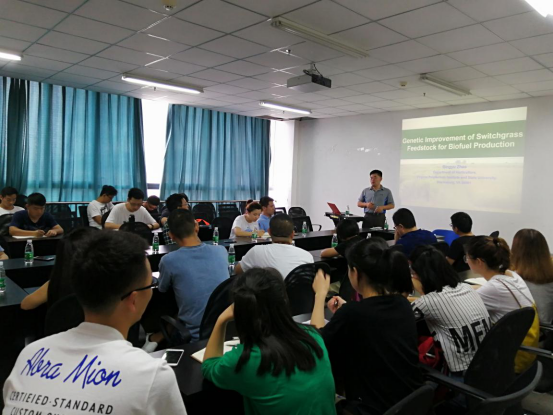 报告会上,赵炳宇副教授从柳枝稷研究的起源、提高柳枝稷优势、柳枝稷抗盐基因分析及转基因技术进行了介绍。依托个人研究方向为主导线,重点阐述了柳枝稷的生物学及遗传学特征、通过基因改造改善柳枝稷细胞壁结构、通过评估和收集自然种质资源构建新的柳枝稷遗传连锁图谱、鉴定柳枝稷抗盐相关基因。报告会上,师生们结合饲用高粱褐色中脉、木质素与植物抗逆相关性、植物病理等方面进行了互动和交流,师生们收获颇丰。动物科技91论坛草学系、玉米所、水稻所相关师生参加了报告会和交流。
