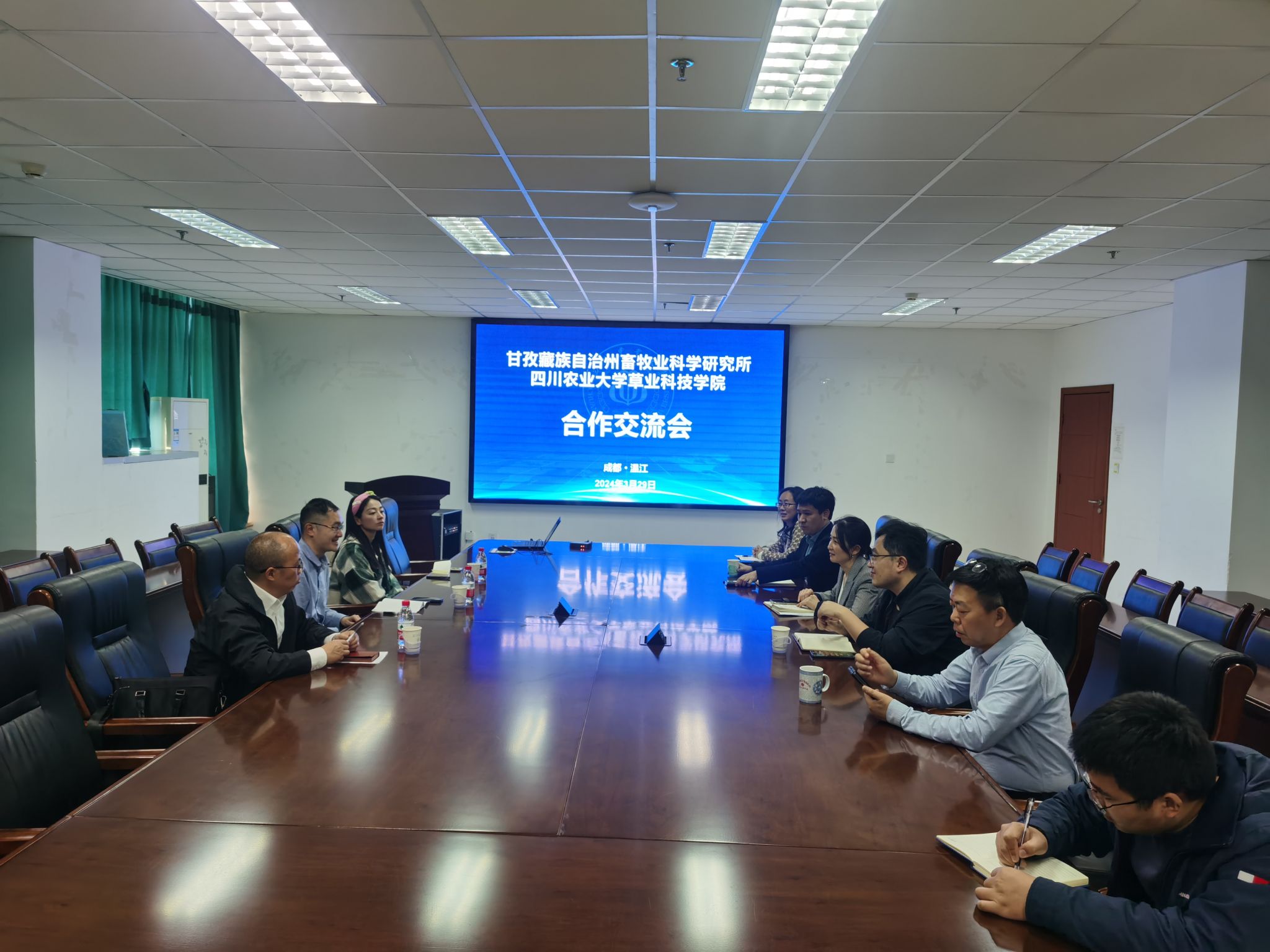 3月29日,甘孜藏族自治州畜牧91论坛 研究所所长刘骏、草原研究室主任刘长青、副主任任淑娉一行到91论坛 洽谈合作交流。91论坛党委书记薛波,副院长马啸、黄琳凯,原院长张新全,草地资源与生态系主任刘琳,基地与实验室管理办公室主任冯光燕等参加座谈会。