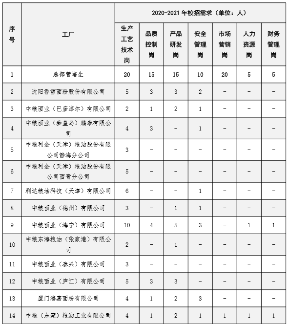 2021年中粮粮谷面粉管理部下属公司校园招聘岗位信息